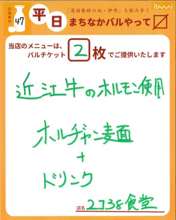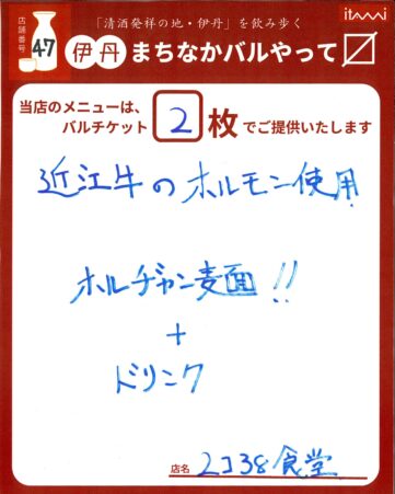 近江牛ホルヂャン麺or丼(ドリンクの代わりにトッピングでも可能) + ビール以外でお願いします