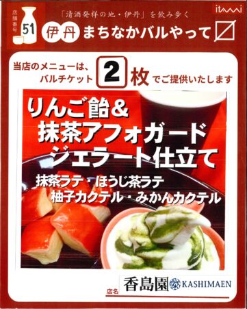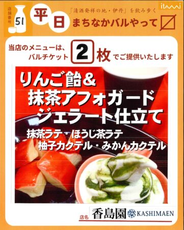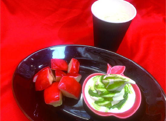 りんご飴・本格抹茶アフォガード + ほうじ茶ラテ/抹茶ラテ/ゆず酒