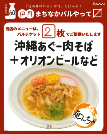 絶品!沖縄あぐー肉そば + オリオンビール/酎ハイ/ハイボール/焼酎/ソフトドリンク