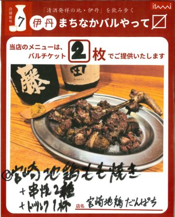 宮﨑地鶏もも焼き・焼鳥2種 + ドリンク各種